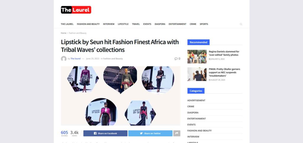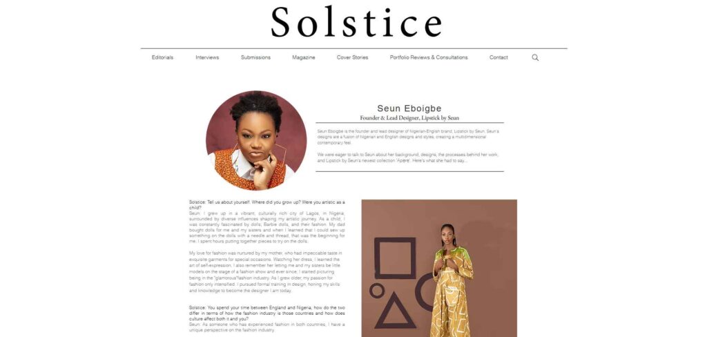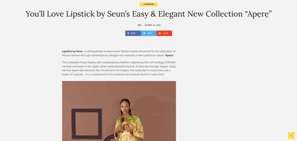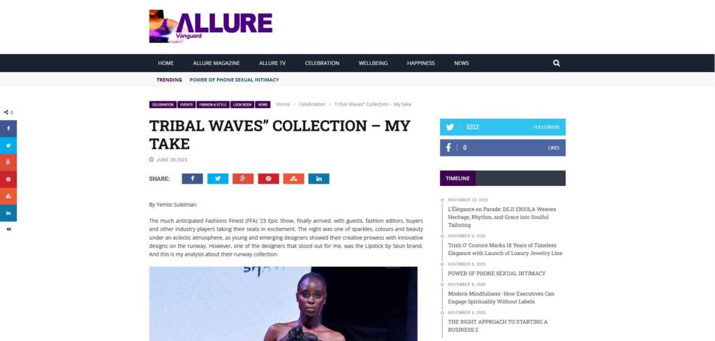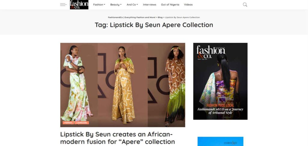 Press BRITISH BLUR Magazine captured Apere on the front cover and the editor had some things to say about the collection. The Tribal waves collection featured in The SUN (Style Bubble), June ‘23 Offtown Magazine spotlighted Lipstick By Seun’s “APERE COLLECTION” Apere as featured in Dolce Spain…